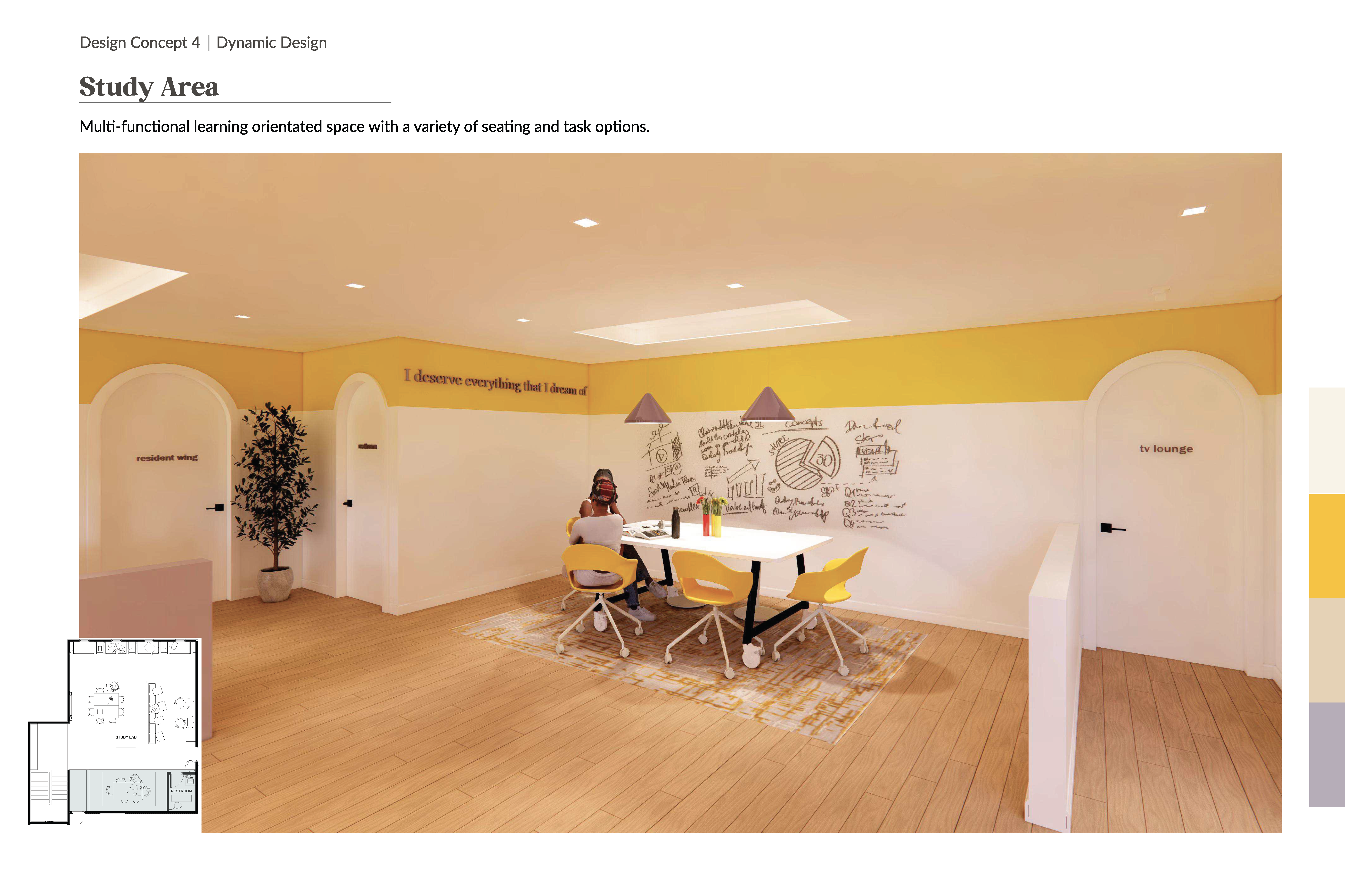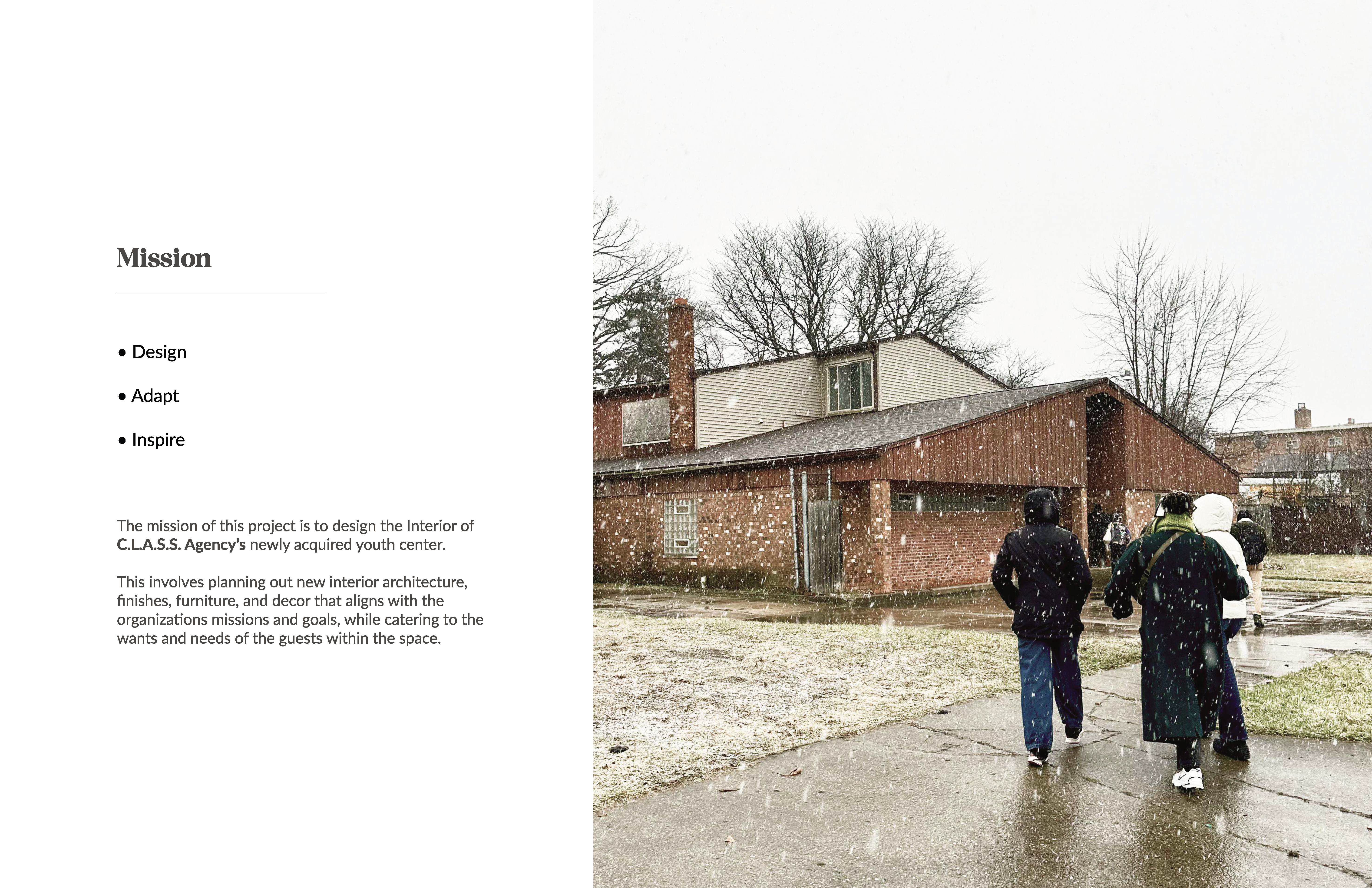 This project involves planning out new interior architecture, finishes, furniture, and decor that aligns with the C.L.A.S.S. Agency's missions and goals, while catering to the wants and needs of the guests within the space.